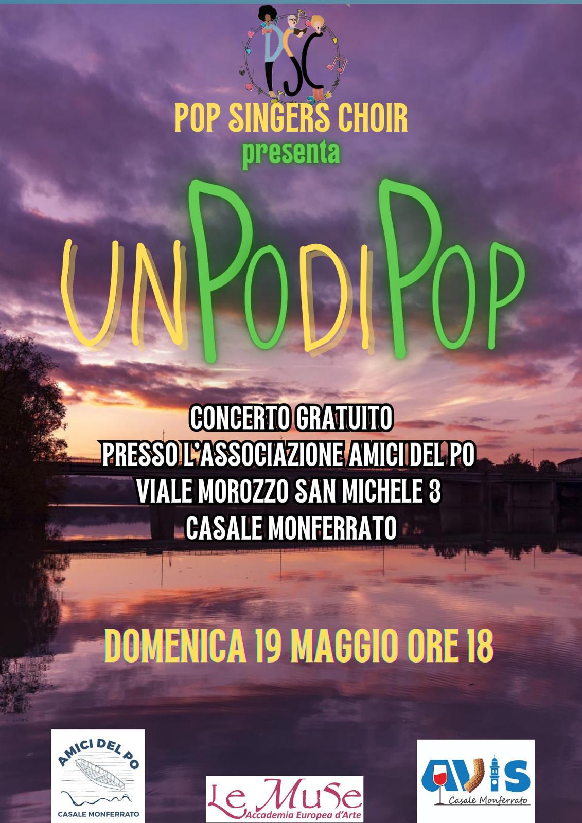 Inoltre, domenica nella sede dell'Associazione Amici del Po di Casale (viale Morozzo San Michele 3 a Casale Monferrato), alle 18, è in programma il Concerto “Un Po di Pop”, l’esordio del “Pop Singers Choir”, nuova realtà casalese nel panorama della musica d'insieme nata in seno all’Accademia Europea d’Arte Le Muse. Per maggiori informazioni clicca qui