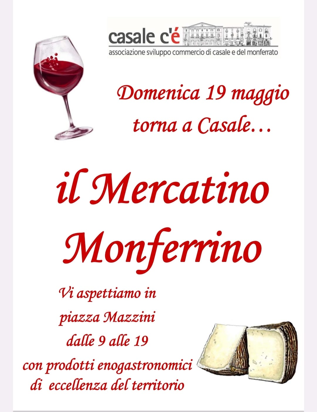 In piazza Mazzini si terrà sabato il tradizionale mercatino Il Paniere mentre domenica sempre in piazza Mazzini si terrà il Mercatino Monferrino, per maggiori informazioni clicca qui