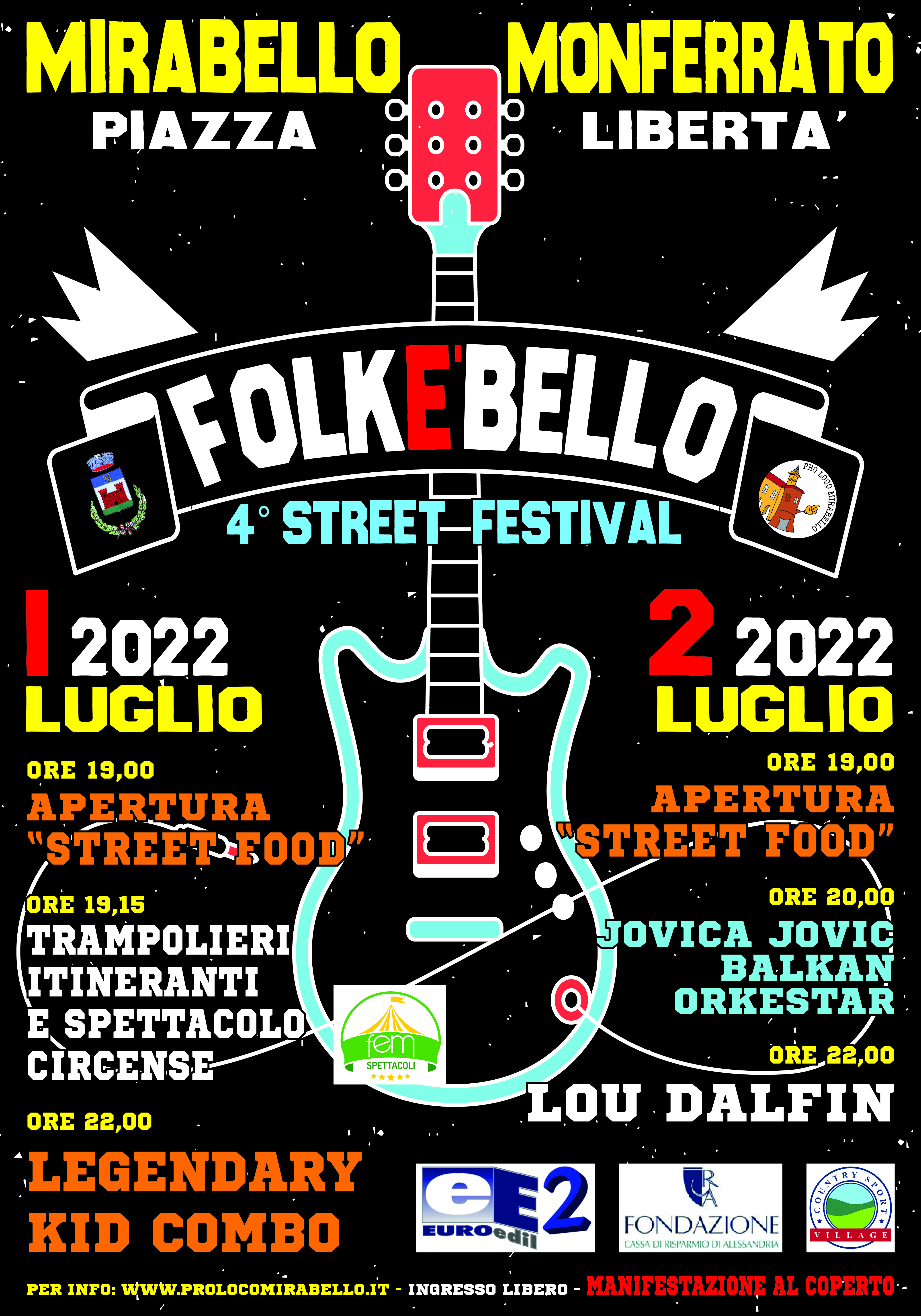 A MIRABELLO MONFERATO prosegue sabato il festival “FolkèBello “ dedicato alla musica folk: dalle 20,00 spazio al fisarmonicista e cantastorie Jovica Jovic con la Balkan Orkestar mentre dalle 22,00 appuntamento con i Lou Dalfin . Per maggiori informazioni clicca qui