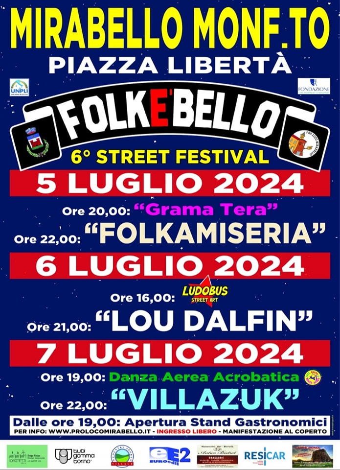 A MIRABELLO MONFERRATO prosegue dalle 19,00 in piazza Libertà la rassegna "Folkebello", per maggiori informazioni clicca qui