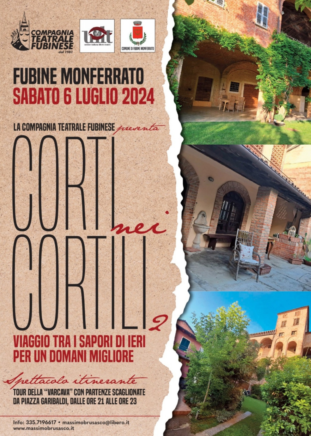 A FUBINE MONFERRATO sabato dalle 21,00 alle 23,00 si terrà lo spettacolo itinerante della Compagnia Teatrale Fubinese "Corti nei Cortili" ; per maggiori informazioni clicca qui