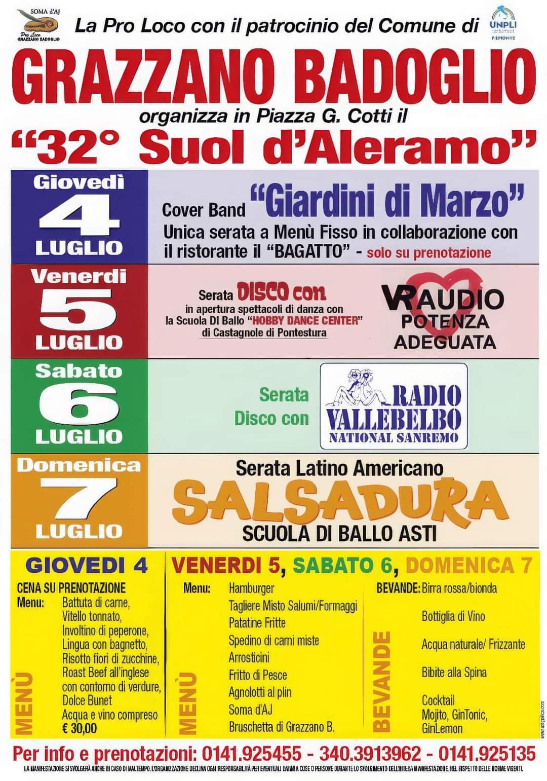 A GRAZZANO BADOGLIO prosegue la rassegna "32° Suol D'Aleramo "; per maggiori informazioni clicca qui