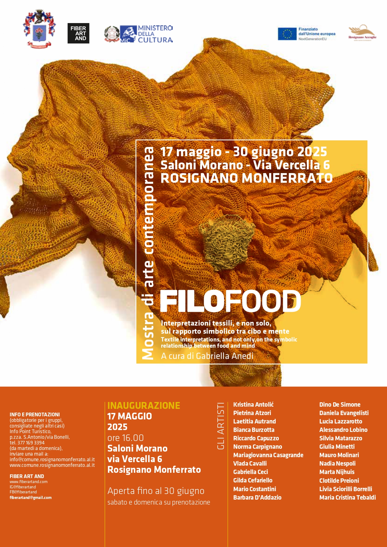 -a ROSIGNANO MONFERATO "Mostra d'arte contemporanea "FiloFood" , per maggiori informazioni e prenotazioni clicca qui ;
