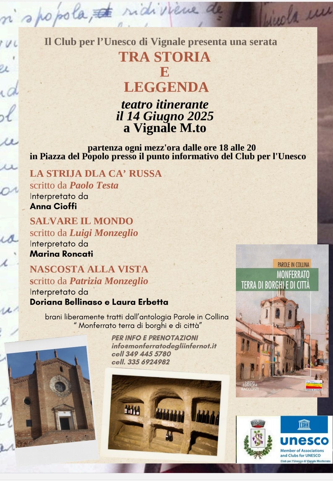 A VIGNALE MONFERRATO sabato si terrà il "Teatro diffuso negli Infernot del Paese"; viaggio teatrale tra Infernot, affreschi e parole a cura del Club per l'Unesco di Vignale, per maggiori informazioni e prenotazioni clicca qui