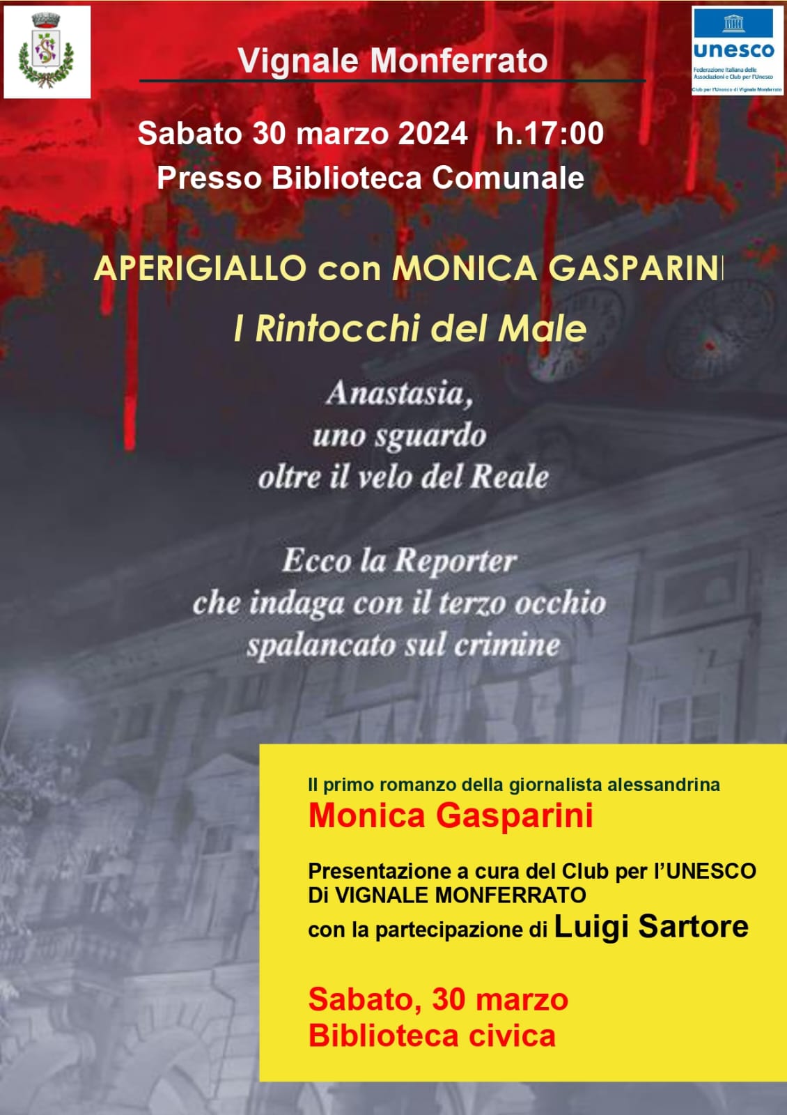A VIGNALE MONFERRATO sabato alle 17,00 presso la Biblioteca Comunale si terrà la presentazione "Aperigiallo" con Monica Gasparini, per maggiori informazioni clicca qui