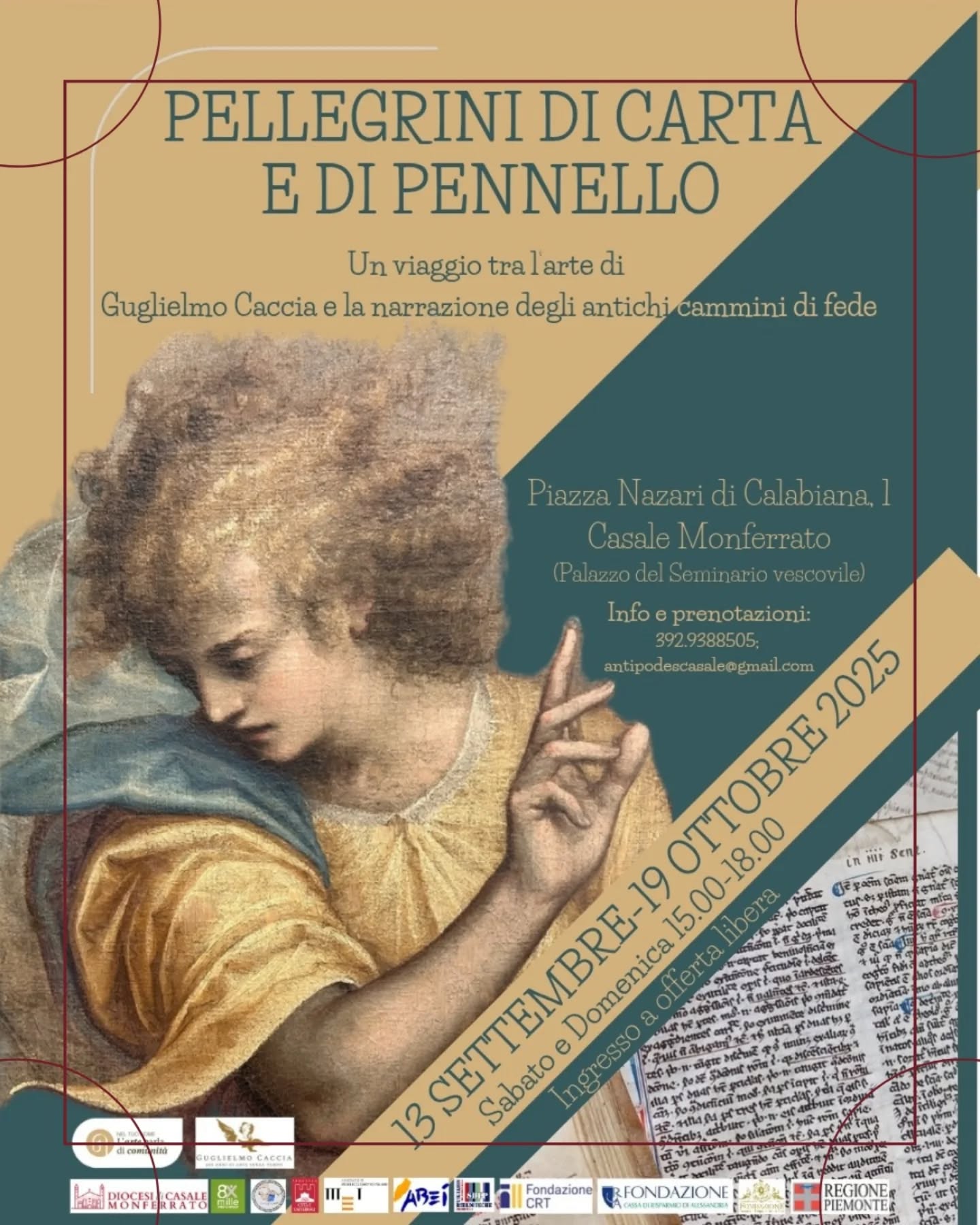 - Presso la Biblioteca del Seminario e alla Cappella Sinodale si potrà visitare la mostra temporanea "Pellegrini di Carta e di Pennello. Un viaggio tra l'arte di Guglielmo Caccia e la narrazione degli antichi cammini di fede". (sabato -domenica); per maggiori informazioni clicca qui