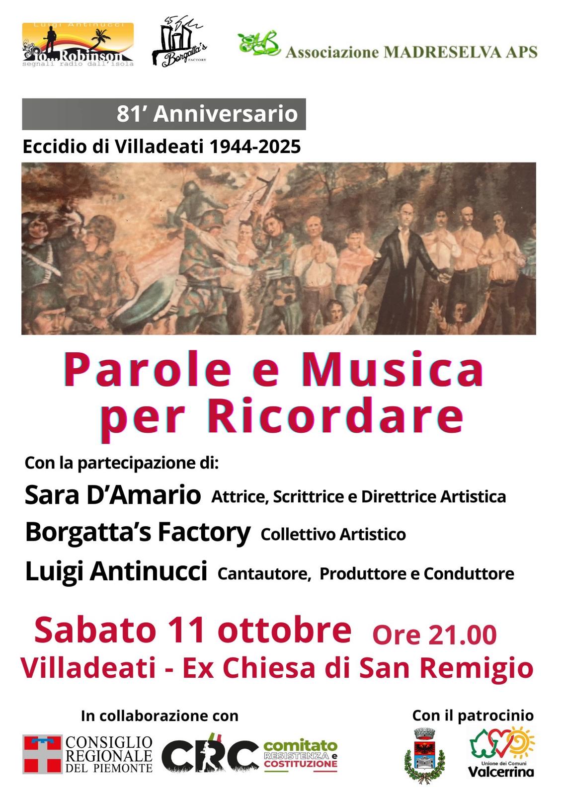 - A VILLADEATI si terrà la rassegna "Parole e Musica per Ricordare" ( sabato); per maggiori informazioni clicca qui
