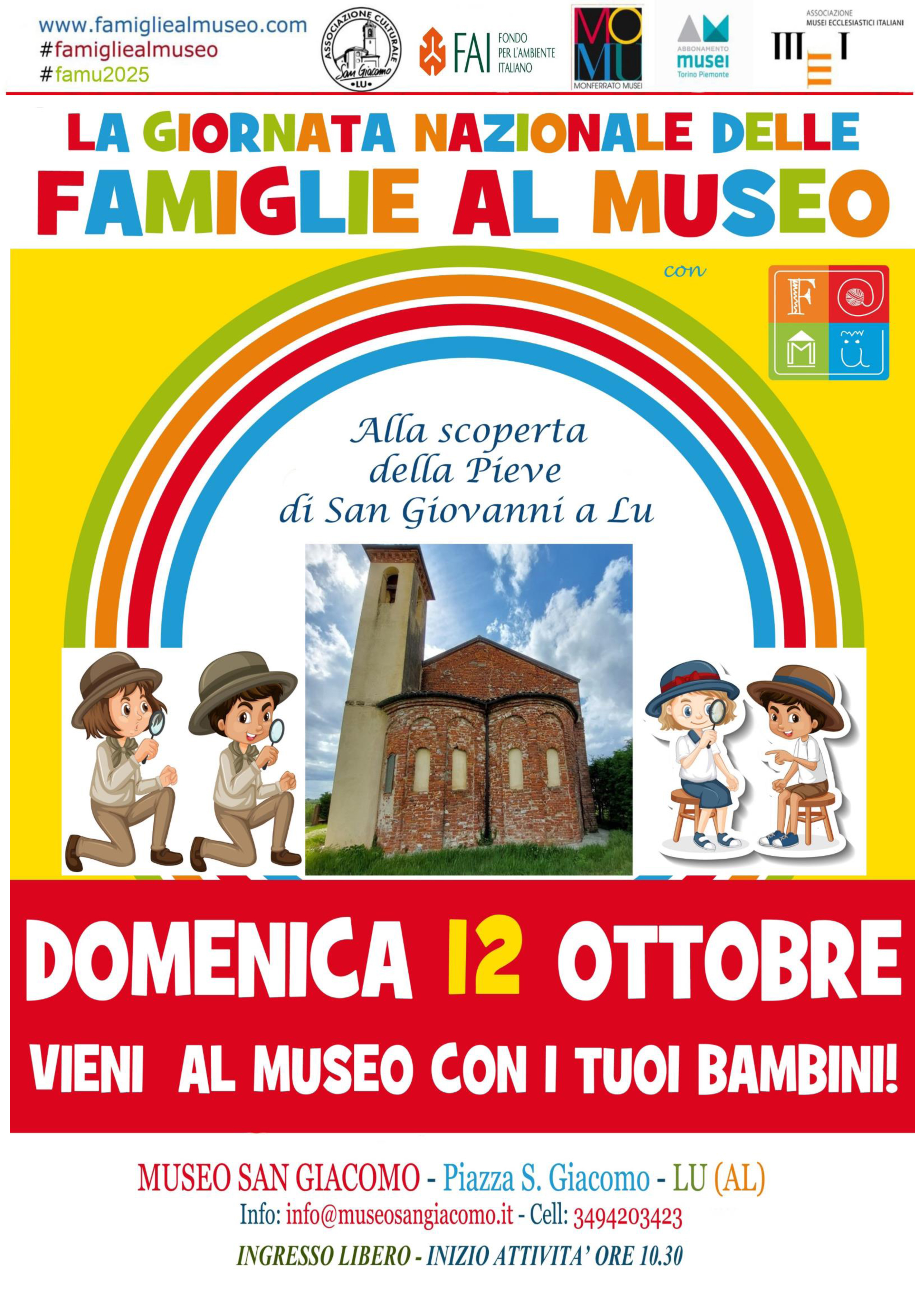 - A LU MONFERRATO nell'ambito della Giornata Nazionale delle Famiglie al Museo, il Museo San Giacomo propone un laboratorio per famiglie "Alla scoperta della pieve"; (domenica) per maggiori informazioni clicca qui