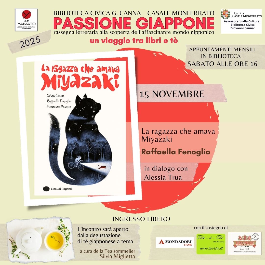 - Presso la Biblioteca Civica G. Canna prosegue la rassegna "Passione Giappone, un viaggio tra libri e tè" (sabato). Per maggiori informazioni clicca qui