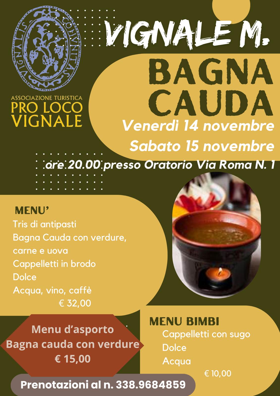 - A VIGNALE MONFERRATO spazio all'evento enogastronomico "Bagna Cauda" ; su prenotazione ( sabato). Per maggiori informazioni clicca qui