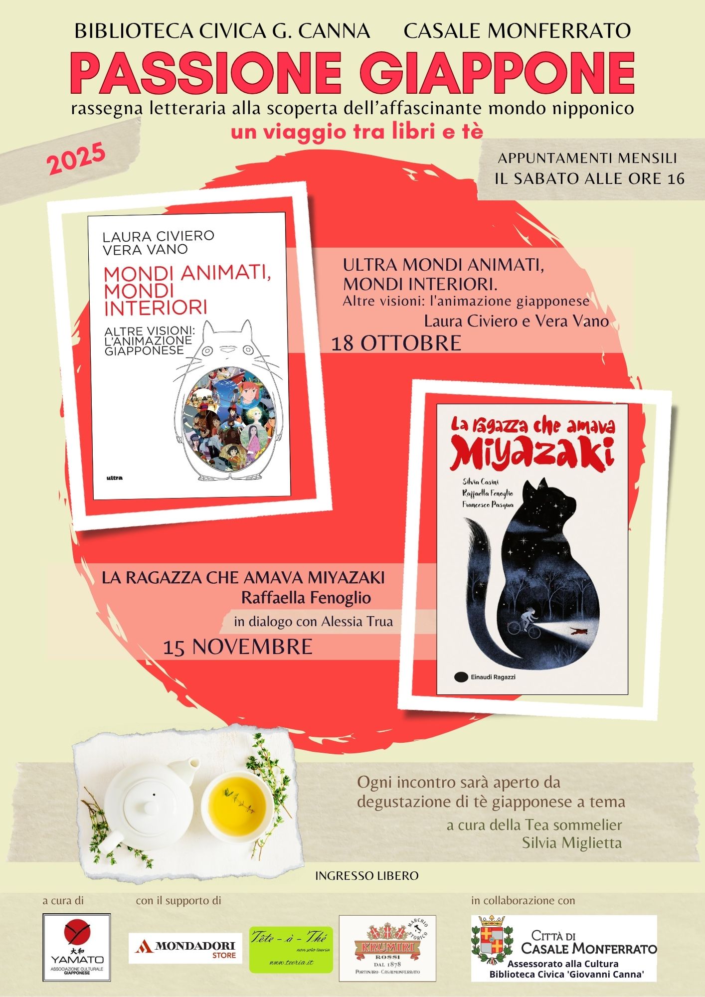 - Presso la Biblioteca Civica G. Canna prosegue la rassegna "Passione Giappone, un viaggio tra libri e tè" (sabato); per maggiori informazioni clicca qui