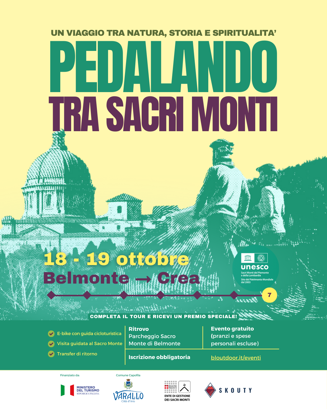 - Spazio alla rassegna "Pedalando tra Sacri Monti " che farà tappa anche presso il Sacro Monte di Crea ; su prenotazione (domenica). Per maggiori informazioni clicca qui