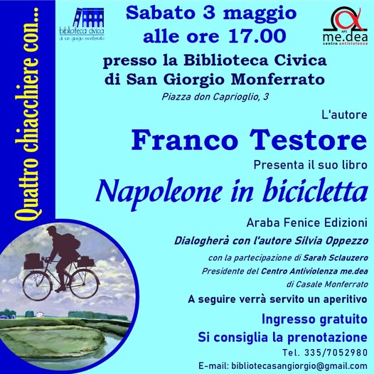 A SAN GIORGIO MONFERRATO sabato alle 17,00 presso la Biblioteca Civica si terrà la presentazione libraria "Napoleone in Bicicletta"; per maggiori informazioni clicca qui