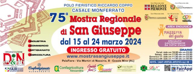Ritorna la storica Mostra Regionale di Casale Monferrato, organizzata dalla D&N Eventi s.r.l., dal 15 al 24 Marzo, in concomitanza al Luna Park, uno dei più grandi d'Italia, situato nella maestosa Piazza d'Armi adiacente al Polo Fieristico Riccardo Coppo.