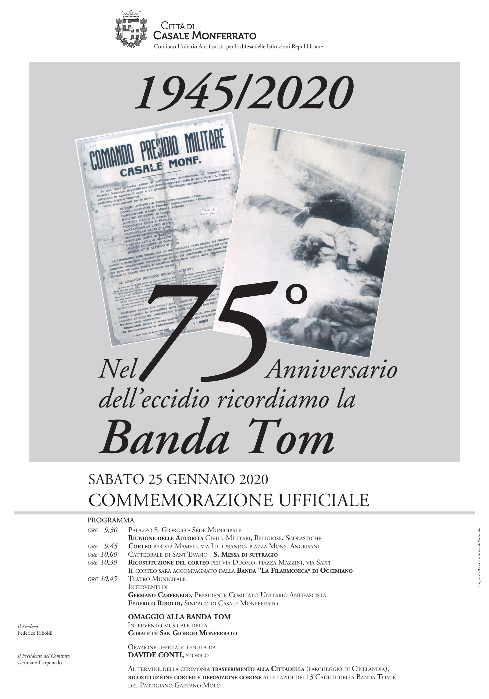 Sabato 25 si celebra il 75° Anniversario della fucilazione dei partigiani della Banda Tom ritrovo alle ore 9,30 in Municipio. Per maggiori informazioni clicca qui