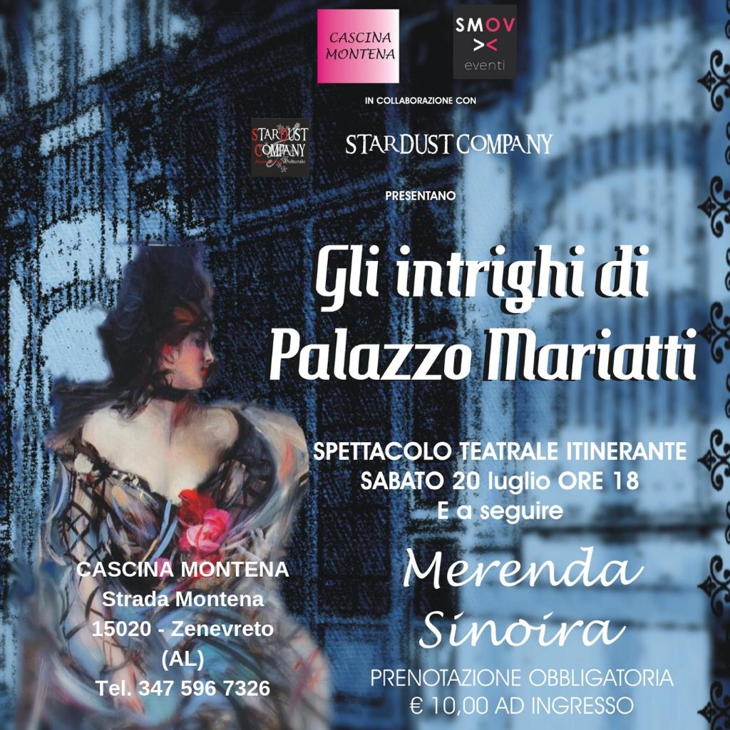 A MOMBELLO MONFERRATO in frazione Zenevreto presso la Cascina Montena, sabato 20 dalle ore 18,00 si terrà lo spettacolo teatrale “Gli Intrighi di Palazzo Mariatti” e a seguire merenda sinoira. Prenotazione obbligatoria. Per maggiori informazioni➡️ cliccare qui