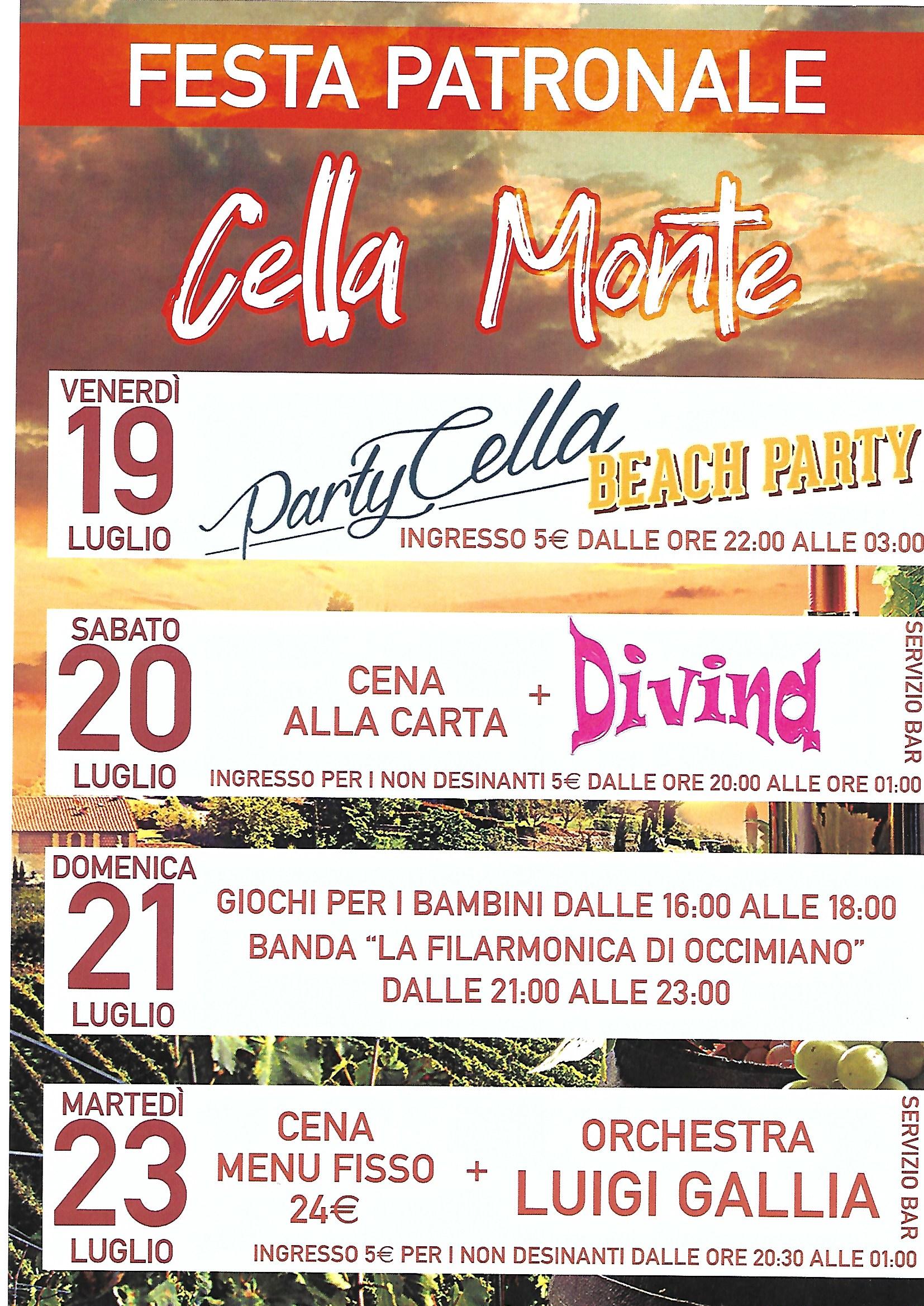 A CELLA MONTE continua sabato e domenica la Festa Patronale (appuntamenti già venerdì), con musica, enogastronomie e giochi per bambini; per il programma completo potete➡️ cliccare qui.