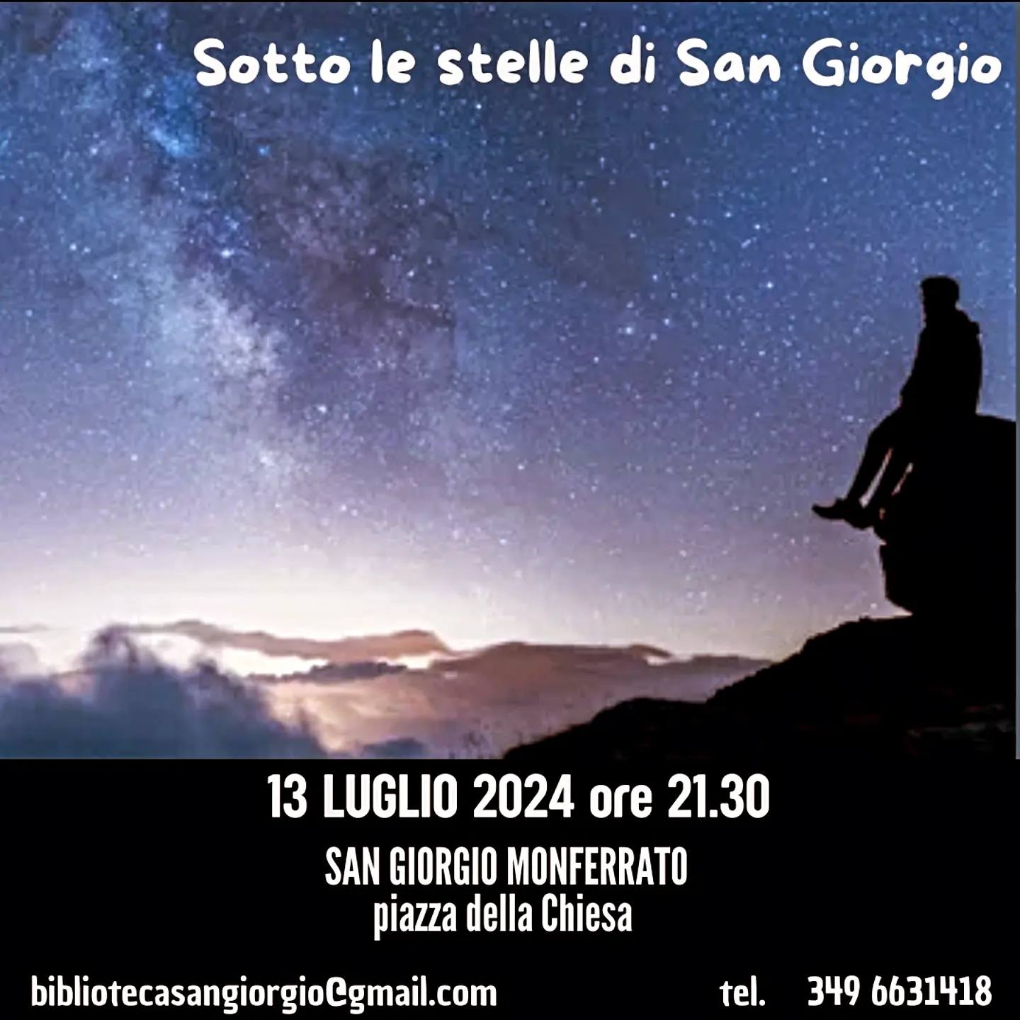 A SAN GIORGIO MONFERRATO sabato alle 21,30 presso la piazza della Chiesa si terrà l'evento "Sotto le stelle di San Giorgio"; per info e partecipazione. Per maggiori informazioni clicca qui