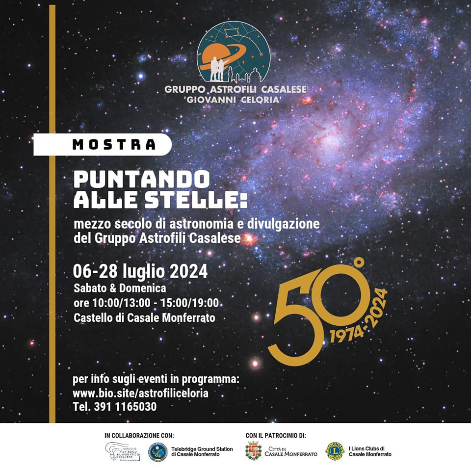 -"Puntando alle stelle" ; mezzo secolo di astronomia e divulgazione del gruppo astrofili casalese. Per maggiori informazioni clicca qui