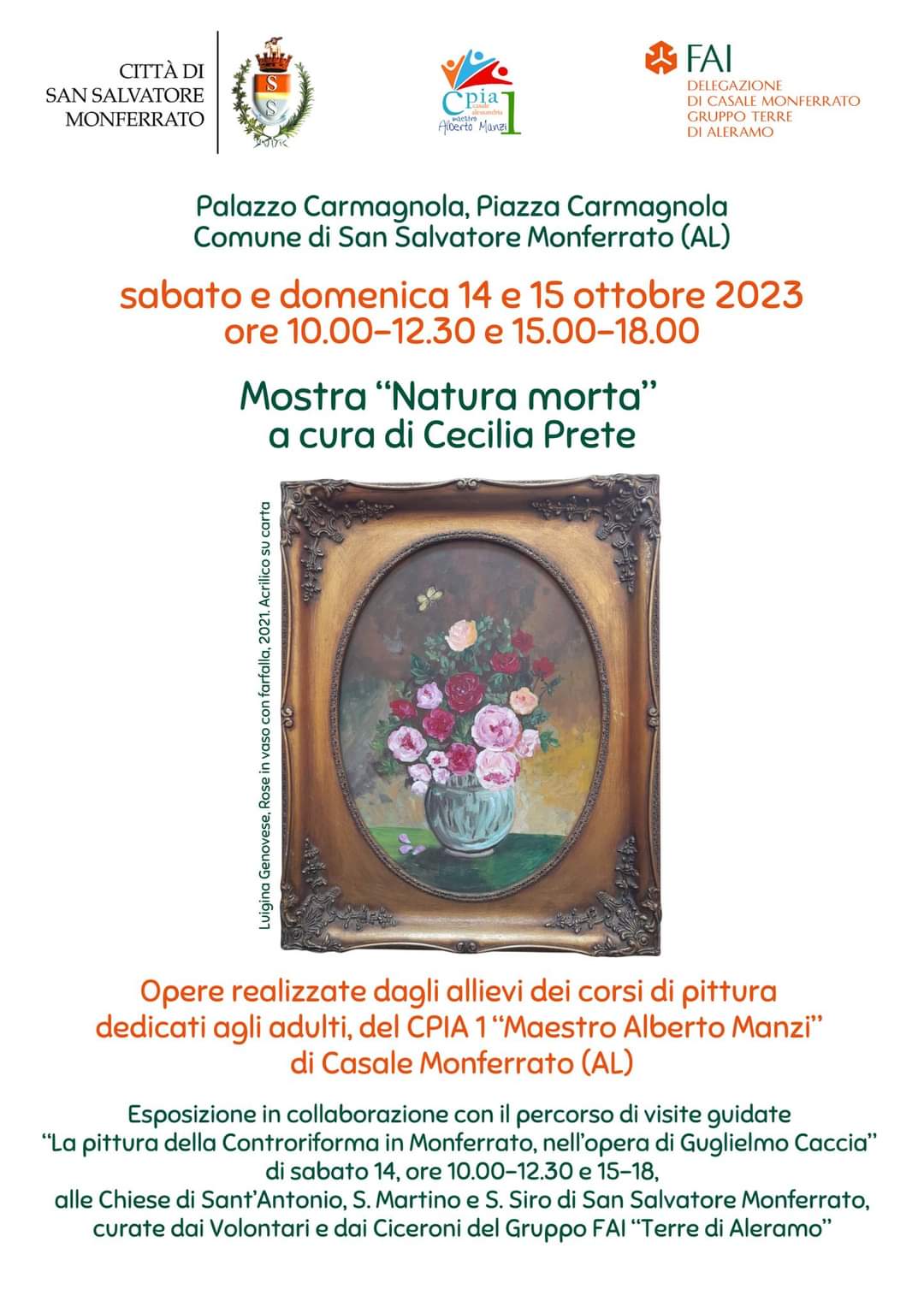 A SAN SALVATORE MONFERRTO nell'ambito delle giornate FAI sabato e domenica sarà visitabile presso palazzo Carmagnola la mostra "Natura morta" a cura di Cecilia Prete, per maggiori informazioni clicca qui