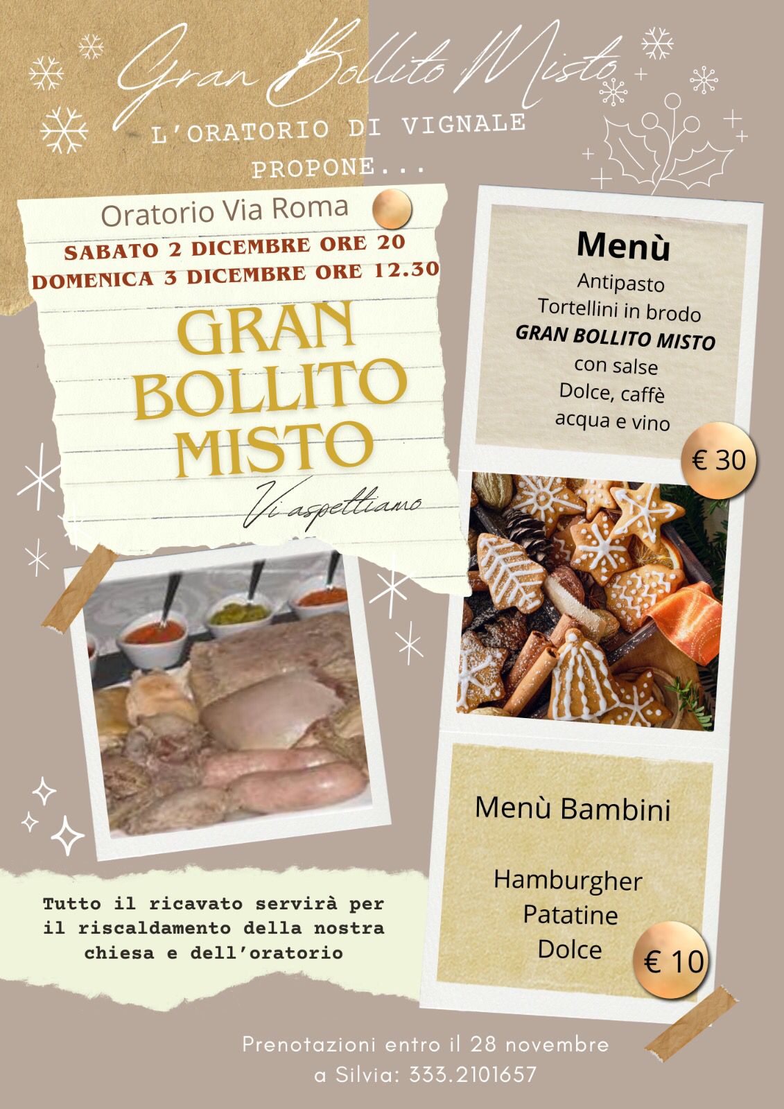 A VIGNALE MONFERRATO sabato e domenica presso l'Oratorio si terrà Gran Bollito Misto , prenotazioni entro il 28 Novembre, per maggiori informazioni clicca qui