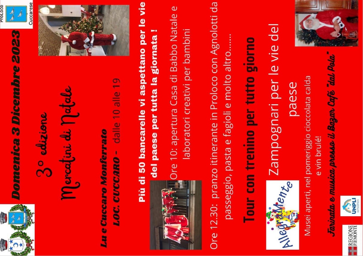 A LU E CUCCARO MONFERRATO domenica si terrà la 3° edizione dei Mercatini di Natale con eventi per bambini ed enogastronomici , per maggiori informazioni clicca qui