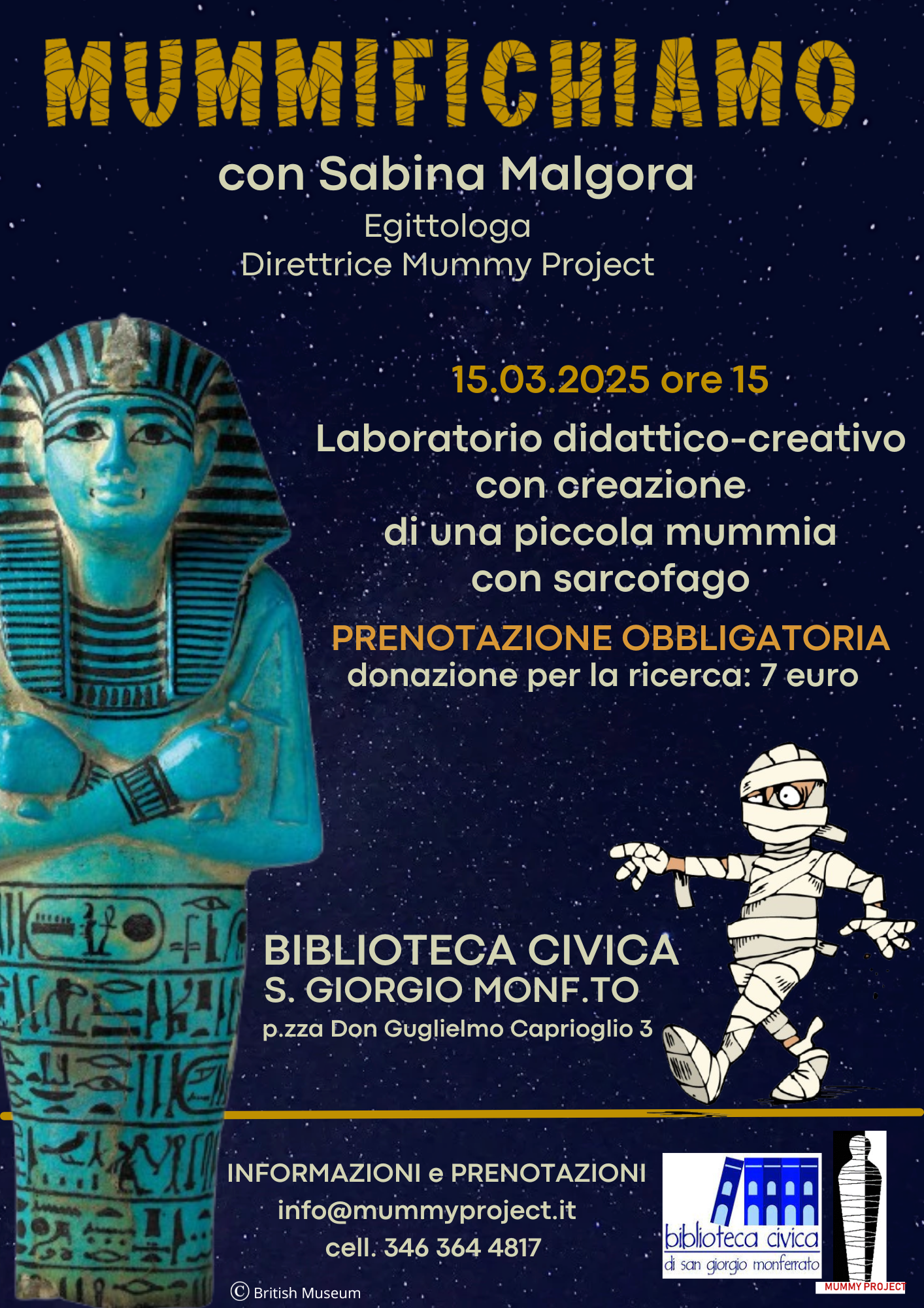 A SAN GIORGIO MONFERRATO sabato alle 15,00 si terrà il laboratorio didattico "Mummy Project" ; prenotazione obbligatoria. Per r maggiori informazioni clicca qui
