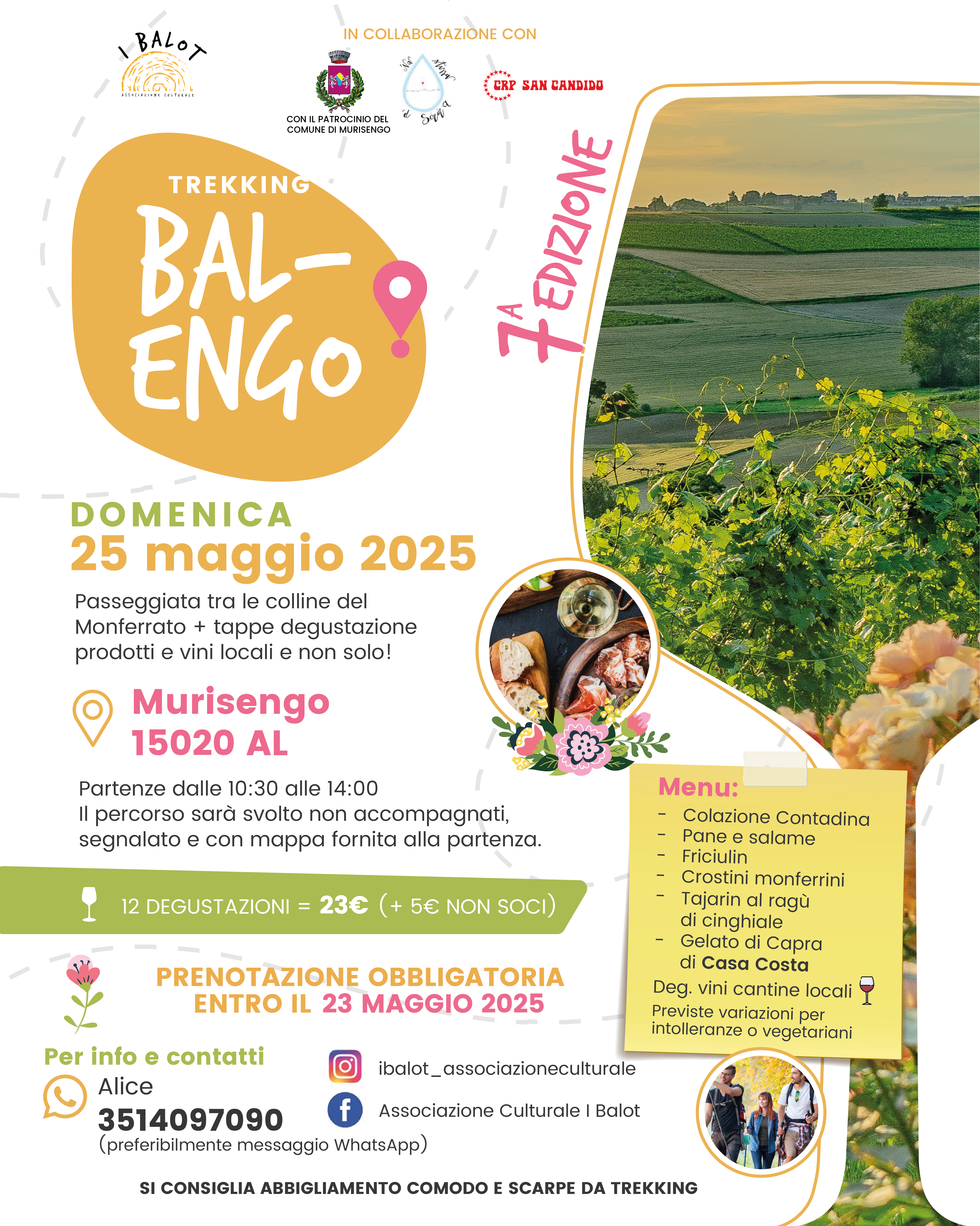 A MURISENGO si terrà domenica il Trekking Balengo ( prenotazioni entro venerdì 23 maggio ); per maggiori informazioni clicca qui