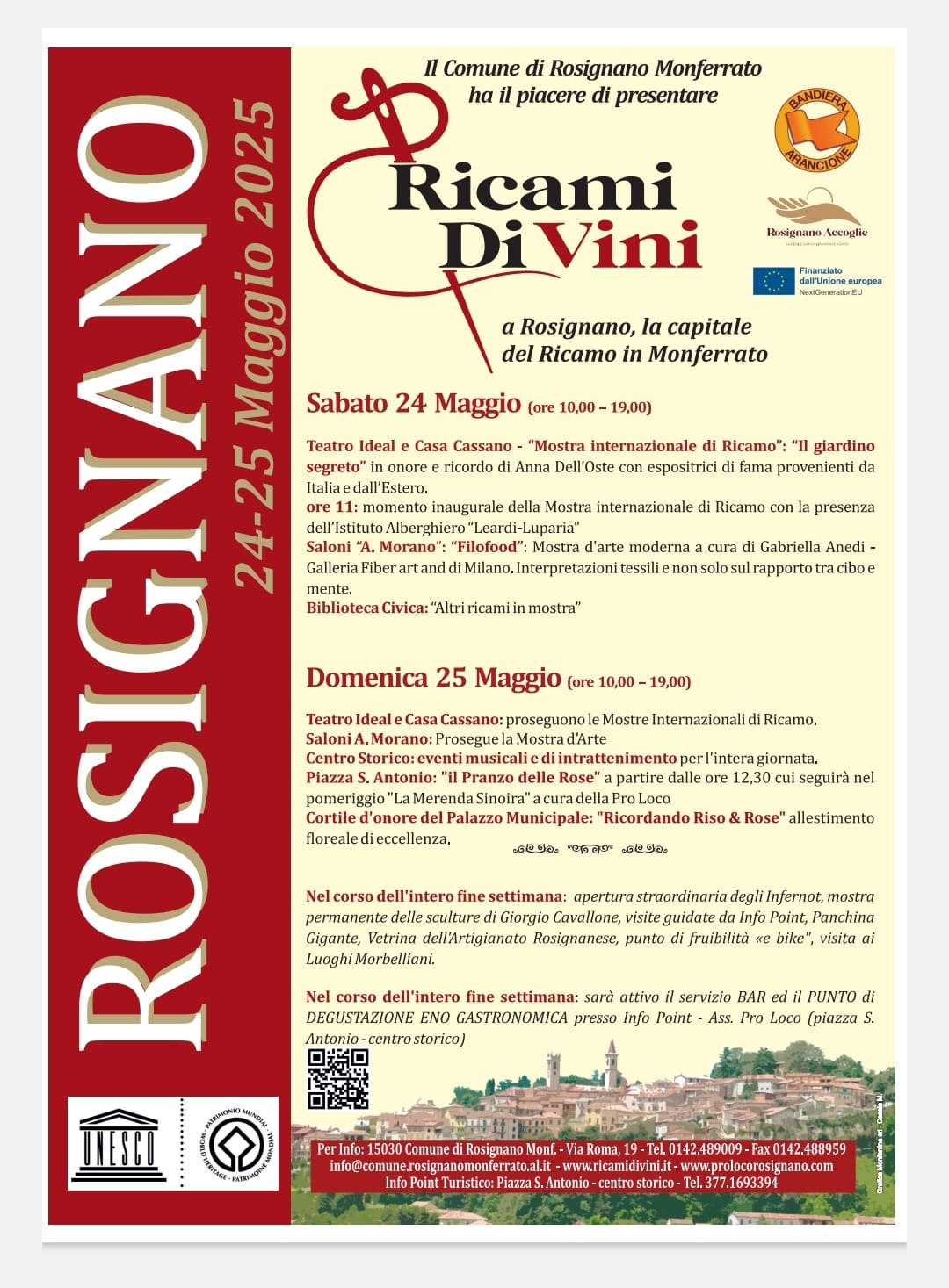 A ROSIGNANO MONFERRATO sabato e domenica si terrà la rassegna "Ricami Divini" con eventi culturali , musicali ed enogastronomici  ; per maggiori informazioni clicca qui