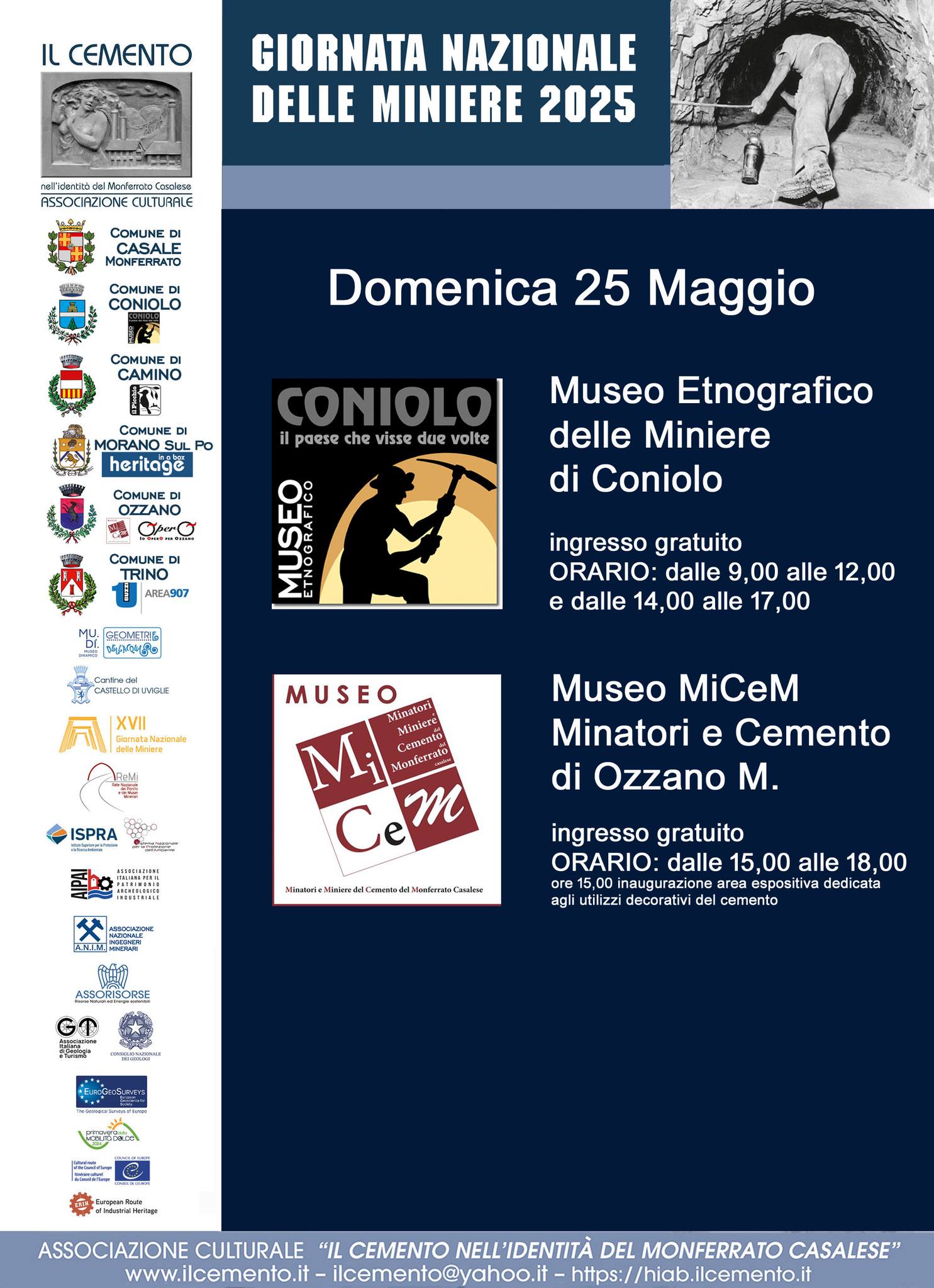 - CONIOLO MONFERRATO domenica 25 Maggio apertura del Museo Etnografico delle Miniere; per maggiori informazioni clicca qui