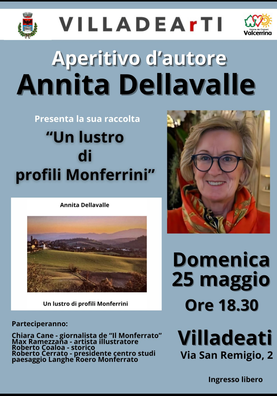 A VILLADEATI  prosegue domenica alle 18,30 la rassegna Aperitivo d'autore con Annita Dellavalle ; per maggiori informazioni clicca qui