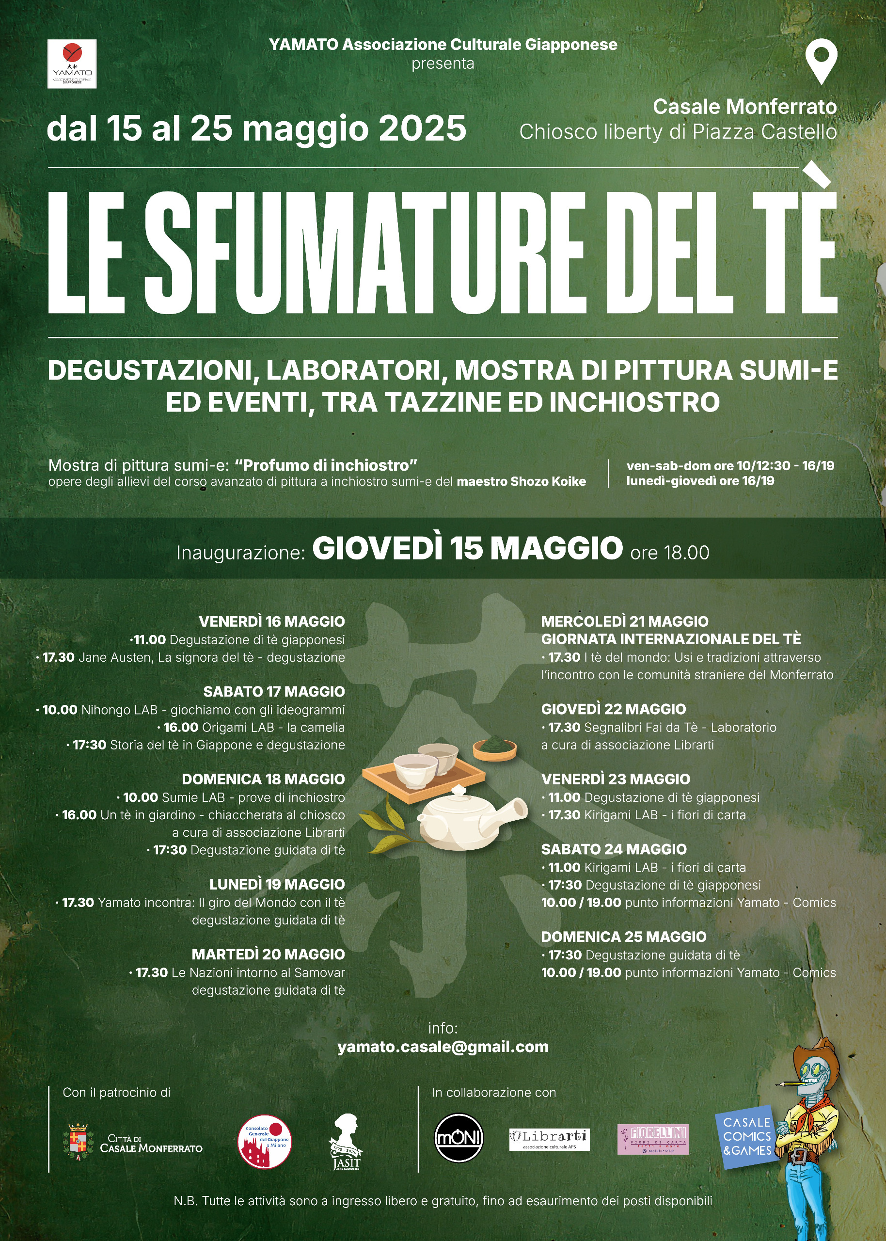- Presso il Chiosco Liberty si terrà la rassegna culturale "Le sfumature del tè"  con orario 10-12,30 e 16-19. Per maggiori informazioni clicca qui
