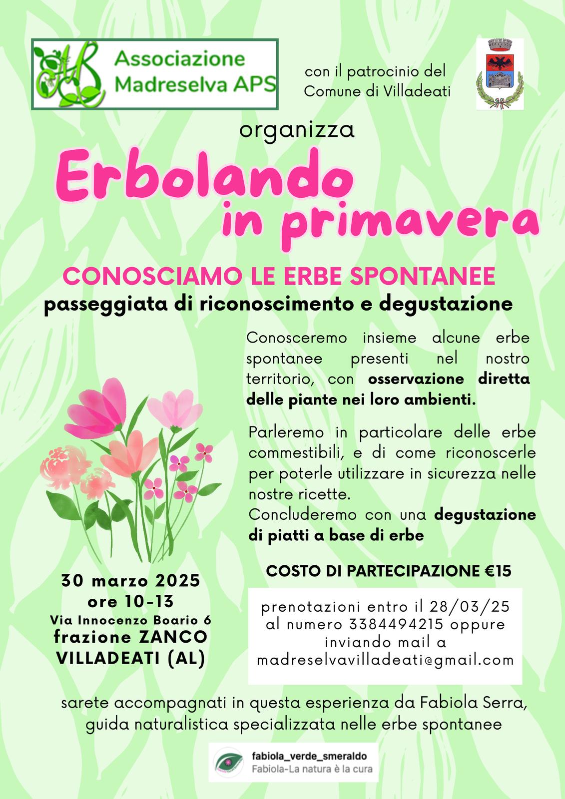 A VILLADEATI domenica si terrà "Erbolando in Primavera. Conosciamo le erbe spontanee" ; per maggiori informazioni clicca qui