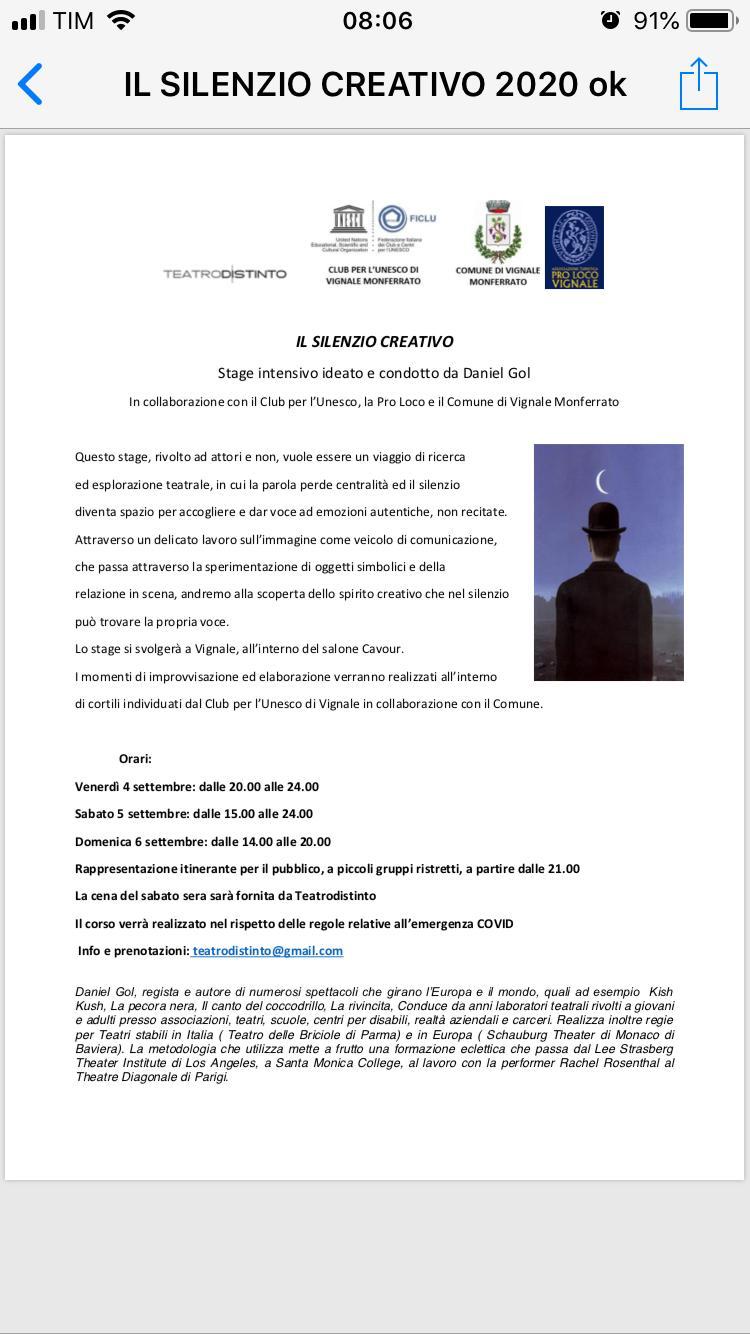 A VIGNALE MONFERRATO sabato e domenica si terrà lo Stage teatrale condotto da Daniel Gol e Teatrodistinto. Per tutte le informazioni clicca qui