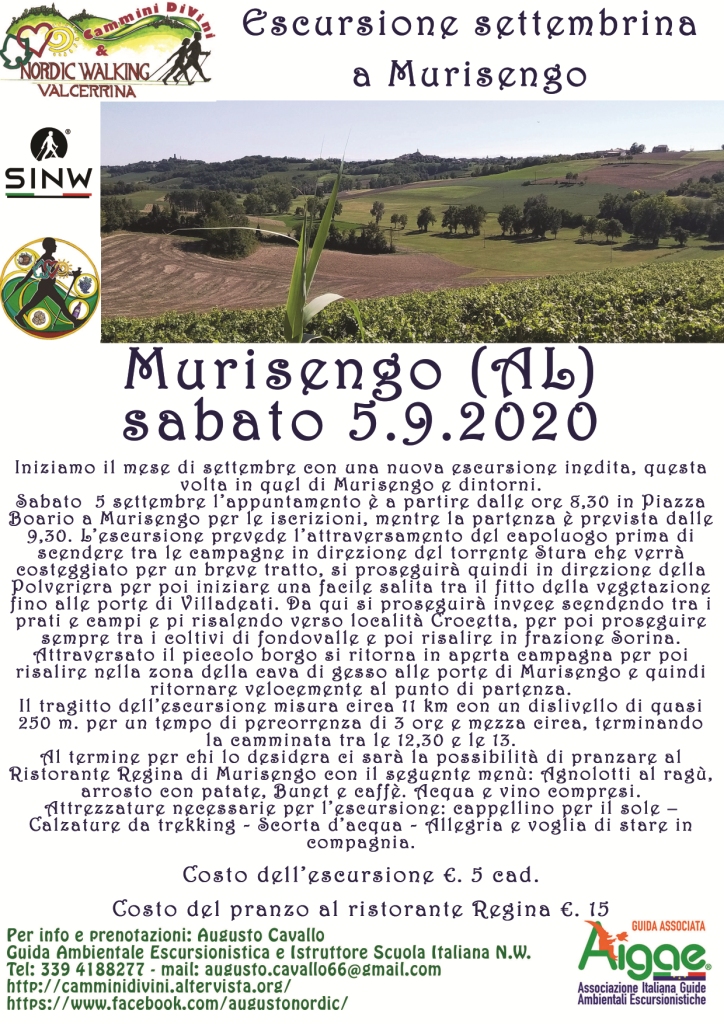 A MURISENGO appuntamento sabato 5 per l'escursione Settembrina (ritrovo alle ore 8,30, prenotazione necessaria). Per tutte le informazioni potete cliccare qui.