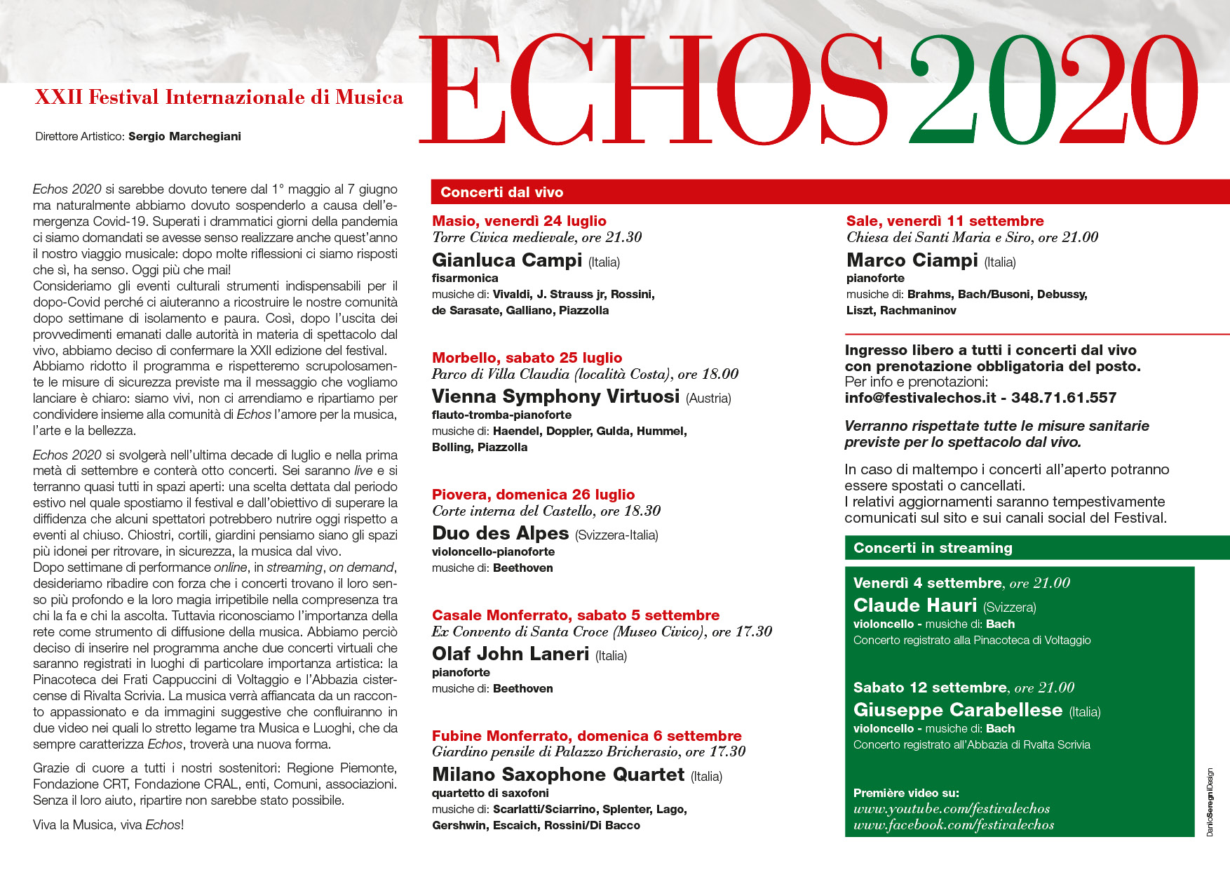 Si riportano le informazioni che sono state comunicate al nostro Ufficio del Turismo IAT dagli Enti Locali. Per aggiornamenti ed approfondimenti si consiglia di visitare la sezione eventi del nostro sito o la nostra pagina Facebook “Mondo Monferrato”.