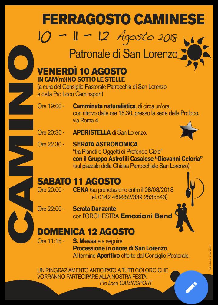 A Camino, la Festa patronale in onore di San Lorenzo avrà luogo dal 10 al 12 agosto.