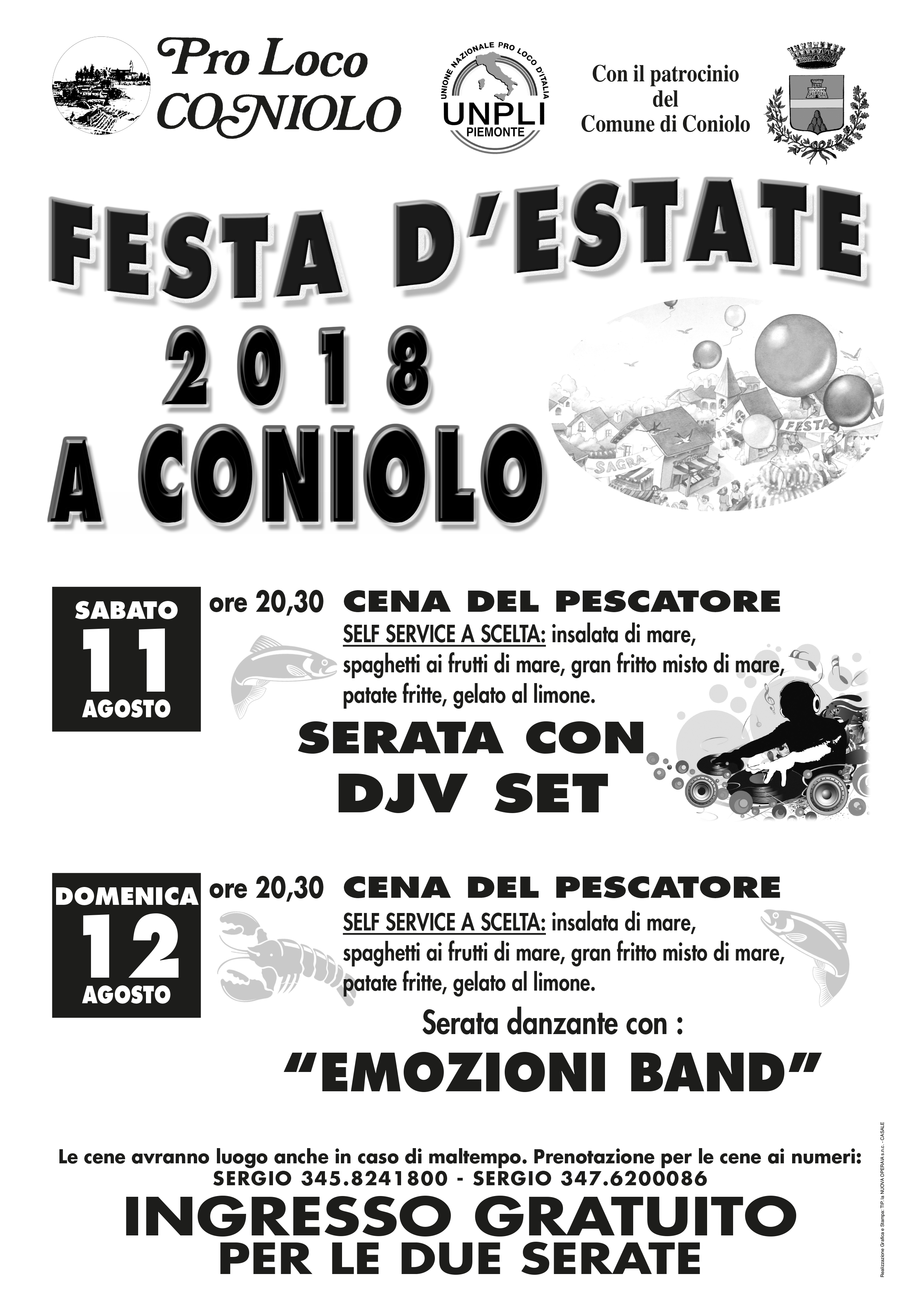 Sabato 11 e domenica 12 agosto la Pro Loco di Coniolo con il patrocinio del Comune propone due serate di musica ed enogastronomia.