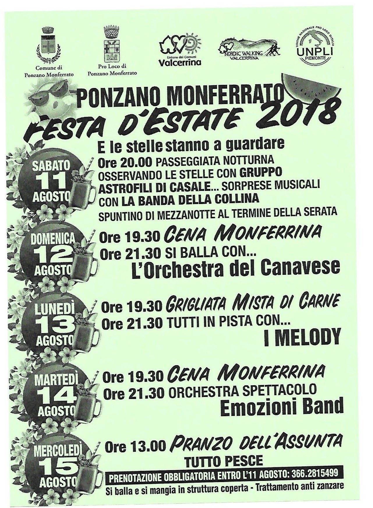 La Proloco di Ponzano Monferrato organizza dall'11 al 15 Agosto nel paese monferrino la Festa d'Estate con cinque giornate di eventi.