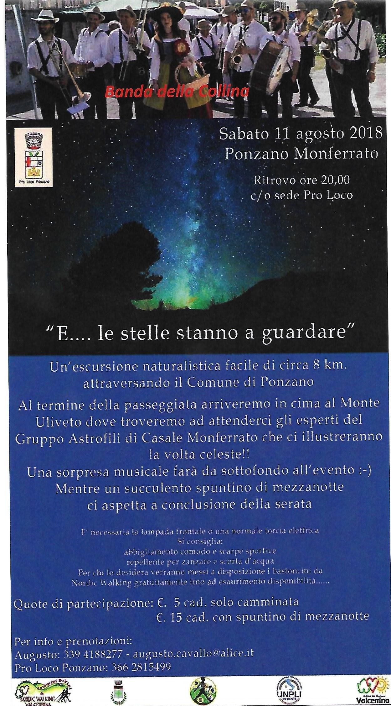 Sabato 11 agosto si terrà “E......le stelle stanno guardare”, passeggiata naturalistica con inizio alle ore 20,00. Una camminata che consentirà ai partecipanti anche di osservare le stelle con il gruppo Astrofili di Casale Monferrato. Per info e prenotazioni alla camminata: 339 4188277 . Per il programma completo clicca qui.