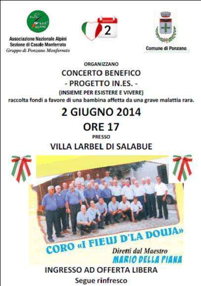 Lunedì 2 giugno, Festa della Repubblica, ore 17 presso Villa Larbel di Salabue, concerto benefico.