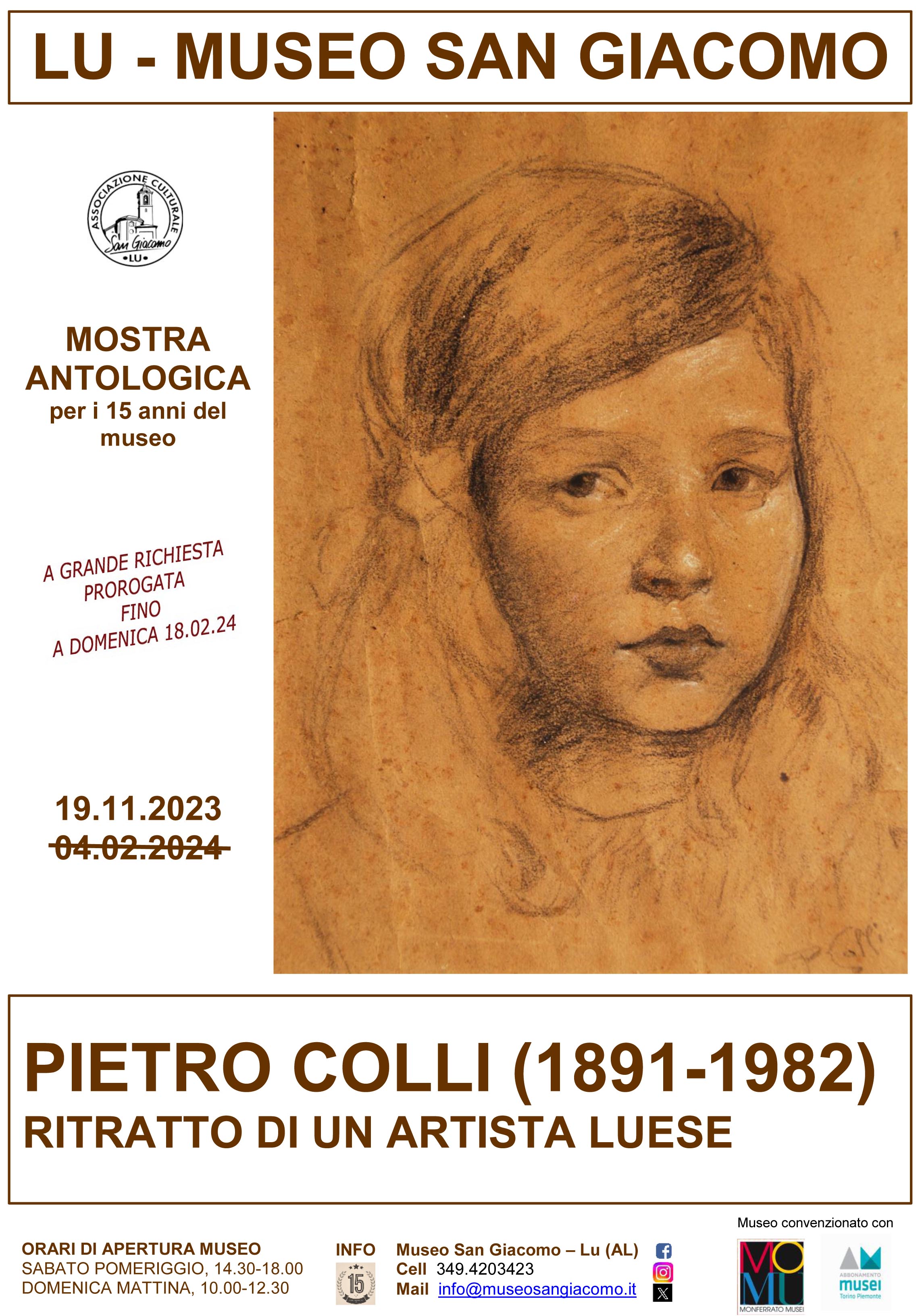Visto il successo di pubblico e il numero sempre crescente di richieste, la mostra antologica Pietro Colli (1891-1982). Ritratto di un artista luese allestita presso il Museo San Giacomo di Lu, sarà prorogata fino a domenica 18 febbraio 2024 con “finissage” previsto per le ore 11.00.