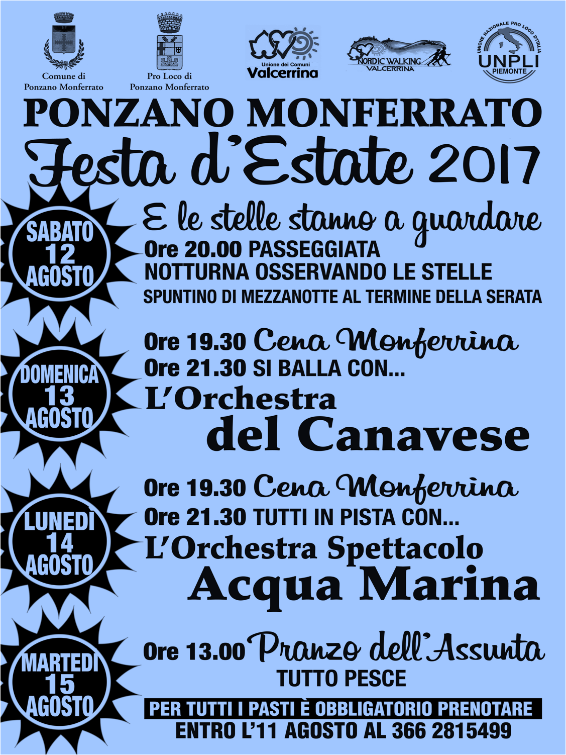 Festa D'Estate 2017 a Ponzano Monferrato (dal 12 Agosto al 15 Agosto)